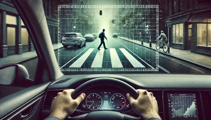CONTRAST SENSITIVITY Contrast sensitivity is the ability to see details such as curbs, pedestrians, and traffic signs in adverse driving conditions like fog and darkness. Drivers with reduced contrast sensitivity may benefit by limiting their driving to the hours between dawn and dusk, and some find their contrast sensitivity improved by wearing glasses with yellow filters. DEPTH PERCEPTION Safe driving depends on depth perception, the ability to accurately judge relative distance between objects in order to change lanes and pass other vehicles, particularly in busy traffic. ACCOMMODATION When driving, one frequently needs to look from the road to the dashboard and back again. This ability to change focus from far to near quickly and smoothly is accommodation or near vision focusing. NIGHT VISION