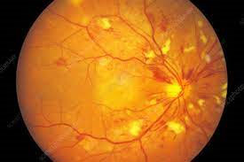 Using an ophthalmoscope, he or she will look for signs including narrowing of the blood vessels, spots on the retina known as cotton wool spots, swelling of the macula and optic nerve, or leaking of blood in the back of the eye.