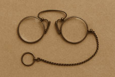 In the 1920s and 1930s glasses were primarily functional. Frames were modest and designed to be as inconspicuous as possible, but symbolised elegance and sophistication and soon became synonymous with artists and intellectuals. The pince-nez style, which clipped onto the nose without temples, was still popular but began to fade as temple-supported designs gained favour. Round frames made from gold, silver, or steel were the standard. By the 1930s, manufacturers started introducing more stylish options and tortoiseshell became a fashionable alternative to metal frames. During the 1930s cat-eye frames first emerged. This decade was also when sunglasses began to take a widespread foothold in fashion. |