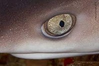Shark eyes are dense with retinal rods, which allows them to see well in dark and murky waters. In addition, their eyes contain a layer of mirrored crystal tissue which reflects light back into the retina, amplifying the amount of available light in their underwater habitat. They have a clear eyelid, which helps them see while simultaneously protecting their eyes. Added to that, they can detect electromagnetic fields emitted when animals move, allowing them to see prey hiding in the sand as well as locate swimming prey very effectively. They rely heavily on other senses, particularly smell, to detect and hunt prey. Sharks and humans share many structural qualities when it comes to the eyes, so much so, that their corneas are sometimes used in cornea replacement surgery in humans. |