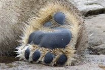 Although little research exists, it is believed that polar bears see about as well as humans, but they rely on their sense of smell to find prey and navigate their featureless environment. One study showed that the feet of the polar bear have large sweat glands which could be used to mark a trail for other bears to follow. A polar bear can smell a seal on the ice from 20 miles away or even buried in snow over a mile away. It may seem surprising given their white–dominated landscape, but research suggests that polar bears have full colour vision, as well as good vision in low light conditions. |