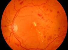 Diabetic retinopathy is a general term for all disorders of the retina caused by diabetes and is the most common of the diabetic eye diseases. It is caused by damage to the small blood vessels in the retina at the back of the eye. Diabetic retinopathy usually progresses through four stages, from mild nonproliferative retinopathy through moderate and severe nonprliferative retinopathy to the more advanced stage of proliferative retinopathy. After a prolonged period of high blood sugar levels, the walls of the blood vessels weaken, thin and bulge or leak into the retina, depriving it of the oxygen and nutrients which are transported by the blood and are essential for its effective functioning. As some of the damaged blood vessels become blocked or close off, new blood vessels begin to grow or proliferate. These blood vessels do not carry much nourishment to the retina. Because they are fragile, they may break or bleed and form clots. The resultant scarring may distort or tear the delicate retina away from the back of the eye causing a detached retina which can cause serious vision problems if left untreated. |